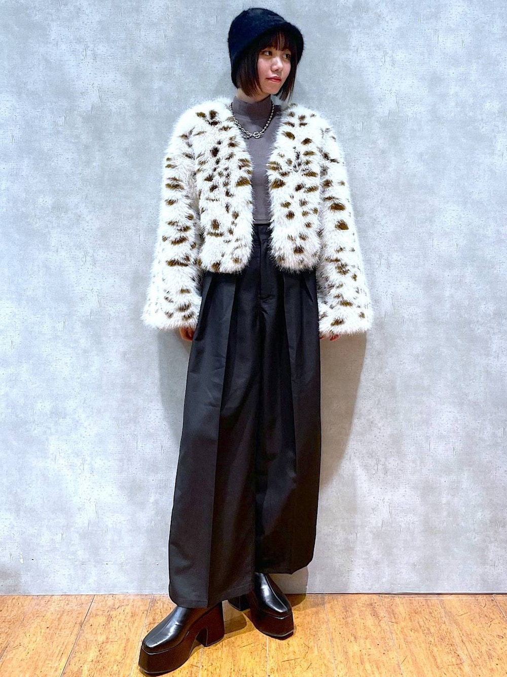 いつもご覧いただきありがとうございます👏🏻 🐈⬛ポイント  ̄ ̄ ̄ ̄ ̄ ̄ ̄ ̄ ̄ ̄ ̄ ̄ ̄ ̄ ̄ ̄ ̄ ファーブルゾンはボリュームのあるショート丈なのでボトムはストレートなハイウエストのボトムにしました。 タックが入っているので脚長効果抜群です! 🐈他にもこんな合わせ方あります☝🏻  ̄ ̄ ̄ ̄ ̄ ̄ ̄ ̄ ̄ ̄ ̄ ̄ ̄ ̄ ̄ ̄ ̄ ドロストのデザインのあるスカートがモードな感じでかっこいいです。