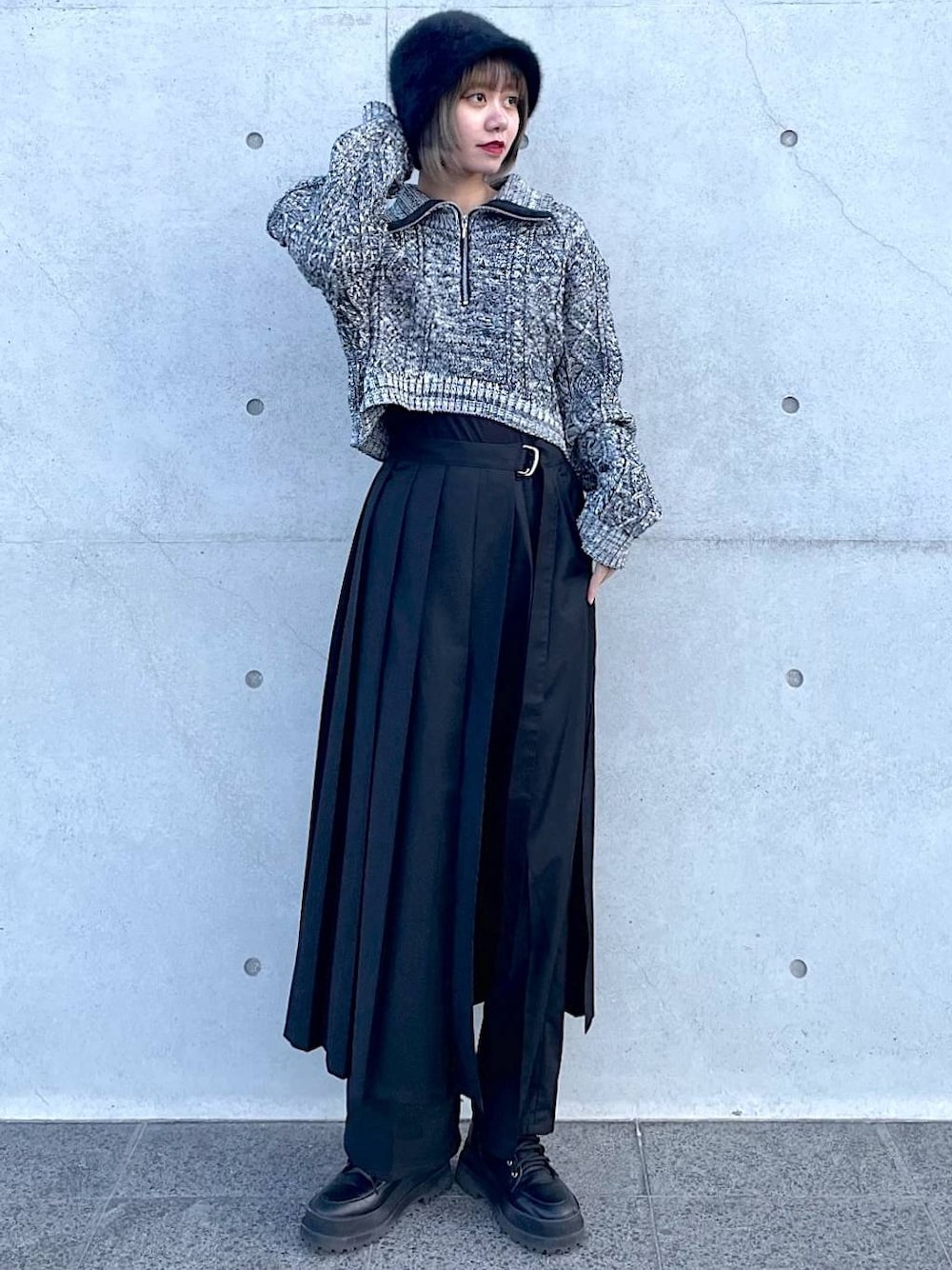 いつもご覧いただきありがとうございます👏🏻 🐈⬛ポイント  ̄ ̄ ̄ ̄ ̄ ̄ ̄ ̄ ̄ ̄ ̄ ̄ ̄ ̄ ̄ ̄ ̄ トップスはショート丈なので、スタイリングでの脚長効果も🙆🏻♀️ パンツはプリーツエプロンがついたデザインで肌触りの良い着心地です!私はRサイズを着用しています 🐈他にもこんな合わせ方あります☝🏻  ̄ ̄ ̄ ̄ ̄ ̄ ̄ ̄ ̄ ̄ ̄ ̄ ̄ ̄ ̄ ̄ ̄ あえて長めのニットを合わせても可愛いです。