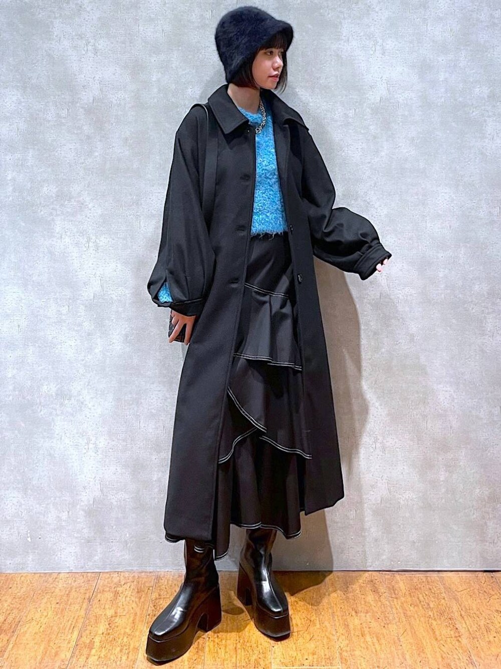 Kotohaのチェスターコート「ケープツキボリュームコート」を使ったコーディネート