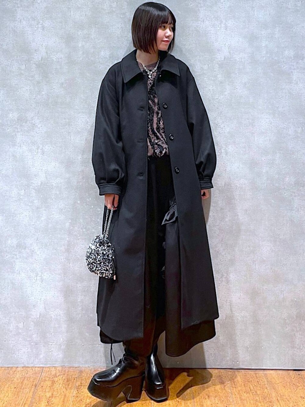 Kotohaのチェスターコート「ケープツキボリュームコート」を使ったコーディネート