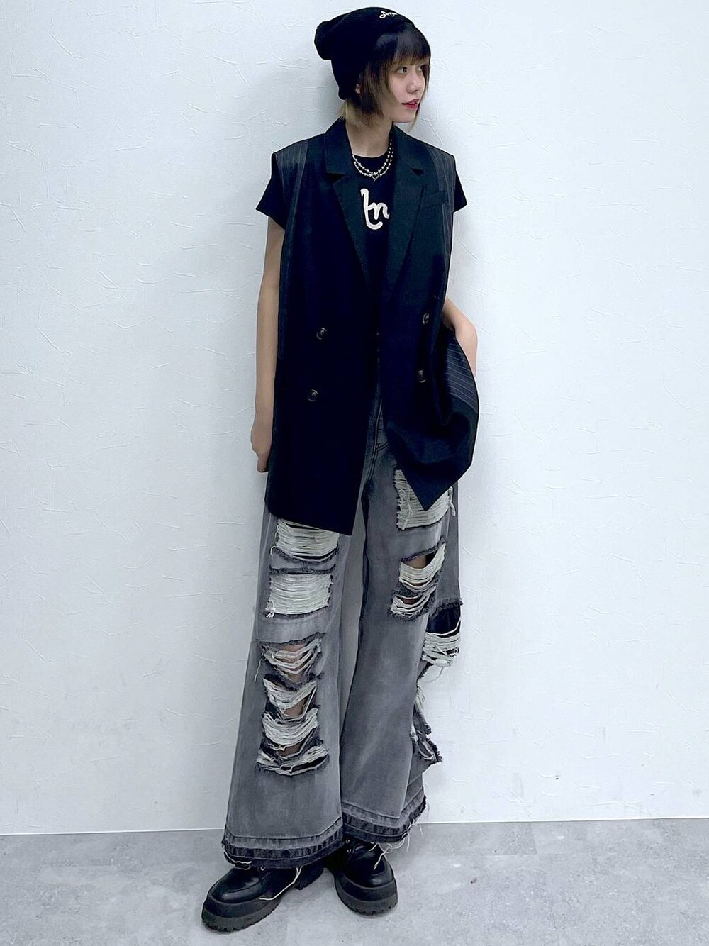 Kotohaのデニムパンツ「【UNISEX/3サイズ展開】モンスターダメージデニム」を使ったコーディネート