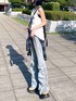 いつもご覧いただきありがとうございます👏🏻 🐈⬛ポイント  ̄ ̄ ̄ ̄ ̄ ̄ ̄ ̄ ̄ ̄ ̄ ̄ ̄ ̄ ̄ ̄ ̄ パンツはR2サイズを着用しています! ギャザーが入っているので脚のラインを綺麗に見せて くれます◎ 柔らかい生地感なので履き心地、肌触りも良いです! 🐈おすすめスタイリング🧥  ̄ ̄ ̄ ̄ ̄ ̄ ̄ ̄ ̄ ̄ ̄ ̄ ̄ ̄ ̄ ̄ ̄ シャツを腰巻するなどしてy2kっぽく着るのもおすすめ インスタはこちら🔎 日々更新してるのでよかったらフォローお願いします🫶🏻💗