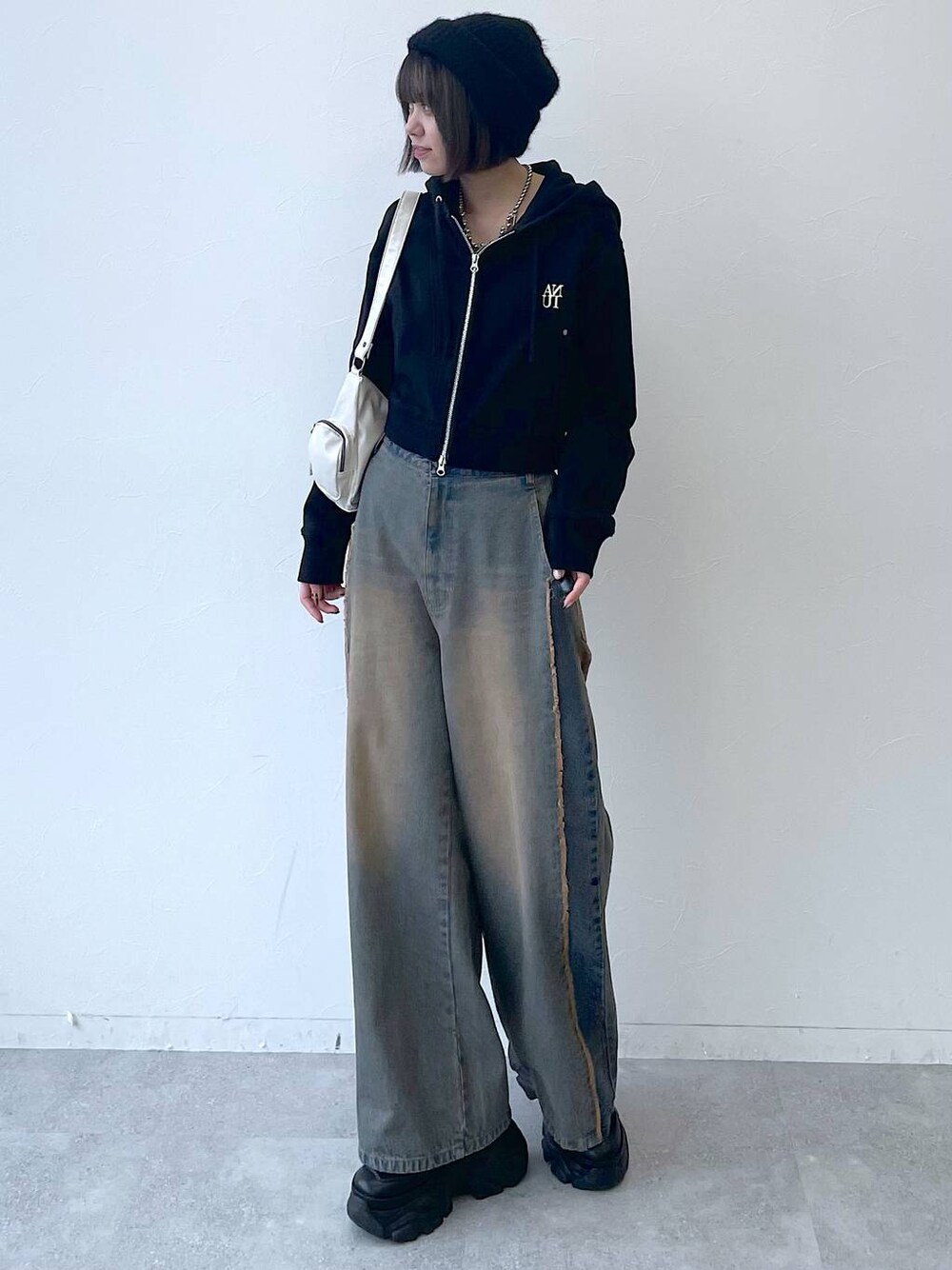 Kotohaのパーカー「【UNISEX】ボクシーロゴZIPパーカー」を使ったコーディネート