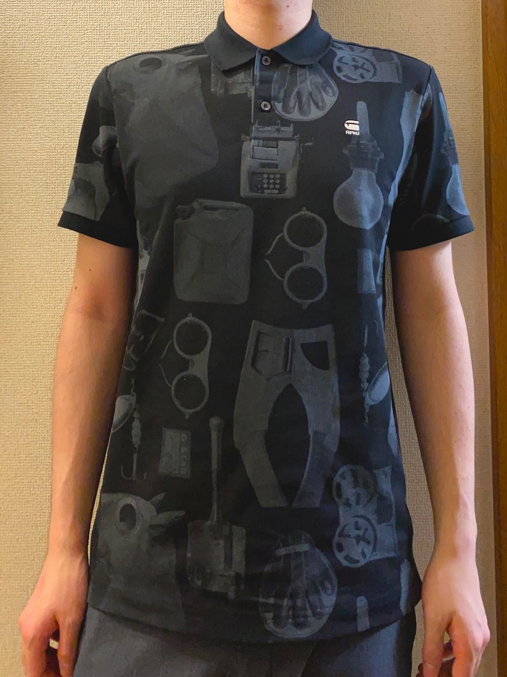 Yujiのポロシャツ「Dunda Materials Allover Graphic Slim Polo」を使ったコーディネート