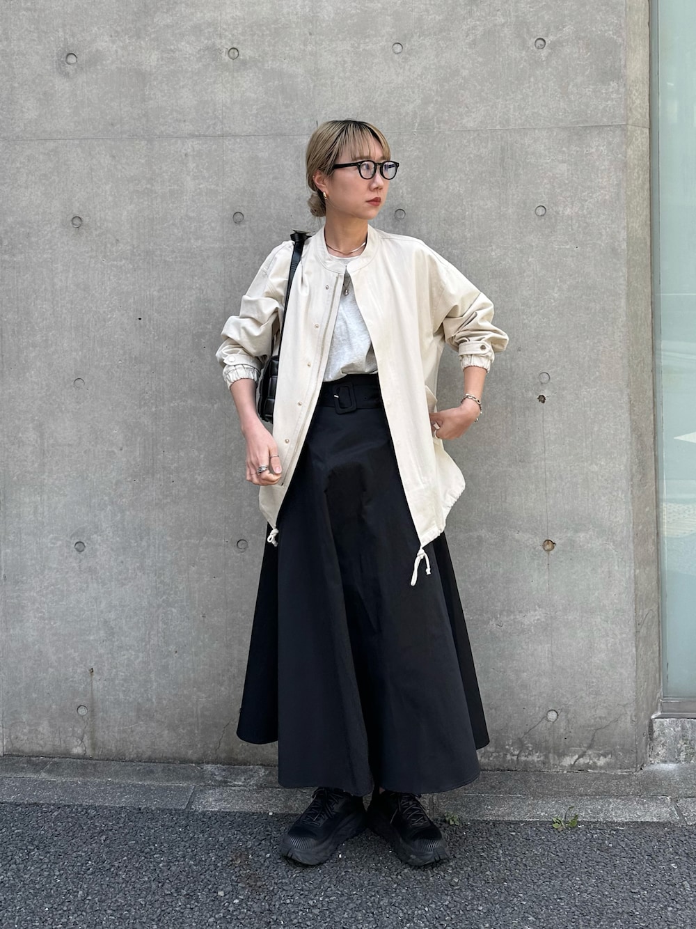 YUKA(feepur)のスカート「【TALLサイズあり】ベルテッドナイロンワークフレアスカート」を使ったコーディネート