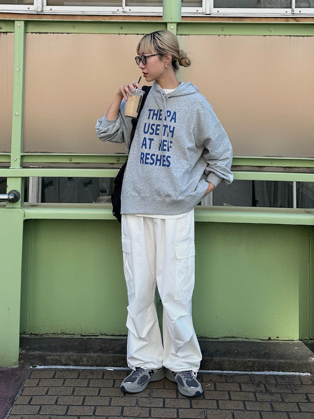 feepur by saya第5弾コラボアイテム販売決定ぃ〜〜✌🏻✌🏻 まずはこちらのパーカー! 【sayaコラボ】アソートロゴビッグパーカー ゆるっと着られるオーバーなサイズ感とsayaさんこだわりのカラーロゴがなんとも言えない可愛さ😩🩶 パラシュートパンツにスニーカーとリュックでとことんスポーティーコーデにしてみた🤝🏻❤️🔥 こちらのアイテムは9/10(日)12:00〜販売スタートとなりますので今しばらくお待ちください〜🎉 Instagram⇨@yuka__kt