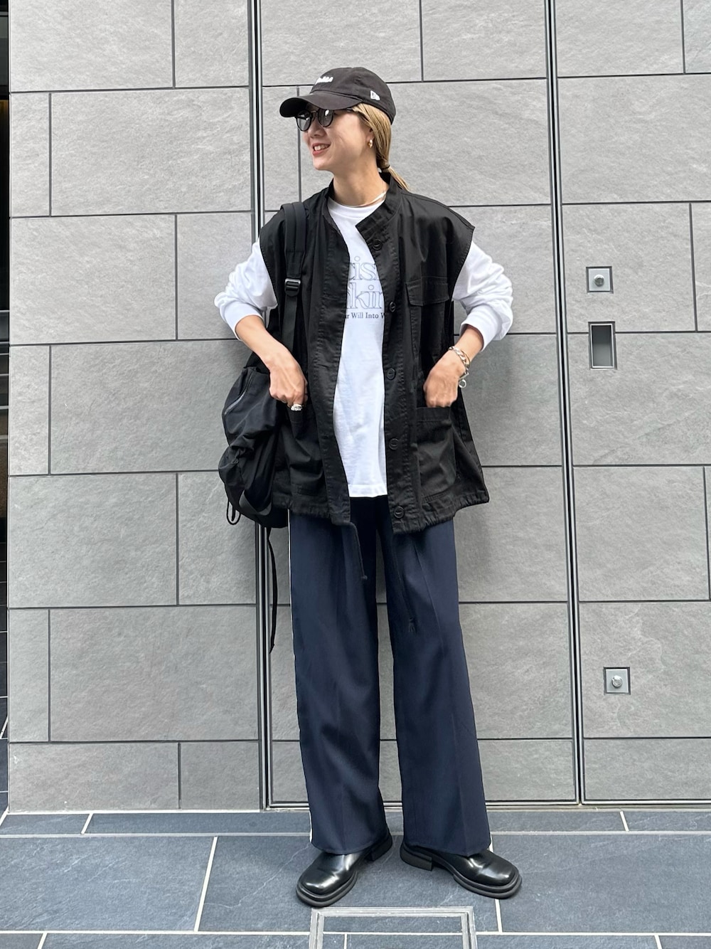 ずっと人気のミリタリーベストを使って秋スタイリング🍂🫶🏻 ミニ裏毛のロゴスウェットとレイヤードして快適に過ごせる気温感になってきましたね🫰🏻 トラックパンツ合わせでスポーツミックスで🖖🏻 Instagram⇨@yuka__kt