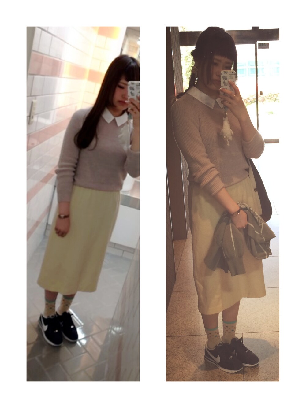 ニット aquagirl スカート 古着 靴下 靴下屋 スニーカー NIKE 美容院に行く前と行った後*