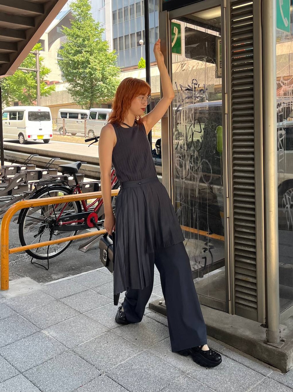 モードな女の夏コーデ やはりカッコ良くは決めたいんだけどめちゃくちゃ暑いからカラーは統一させたばちばちモードな感じにしますた アイテムが全てデザイン性高めだからほんまにかっちょ良く決まるにょ その他の着こなしはこちら
