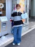 よここ(Adastria 本部)のポロシャツ「アソートボーダーラガーシャツ/599656」を使ったコーディネート