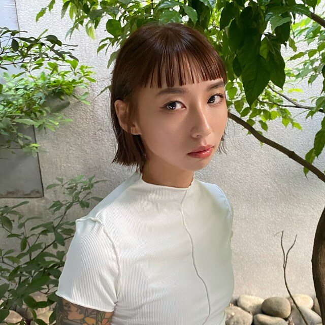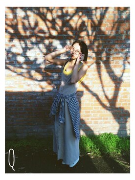 「Hey!Qのアイテム(タンクトップ、イエロー系)」を使った、游さん(レディース・163cm)の秋コーディネート