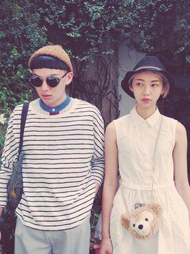「Hey!Qのアイテム(シャツワンピース、ホワイト系)」を使った、游さん(レディース・163cm)の秋コーディネート