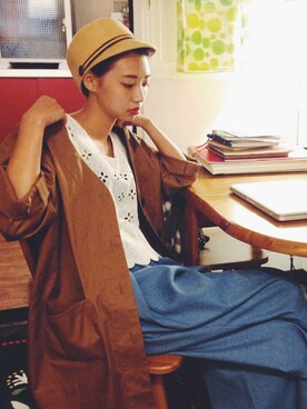 「Hya!Qのアイテム(ベスト、ホワイト系)」を使った、游さん(レディース・163cm)の秋コーディネート
