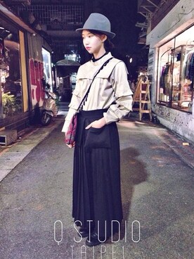 「Hey!Qのアイテム(シャツ/ブラウス、ベージュ系)」を使った、游さん(レディース・163cm)の冬コーディネート