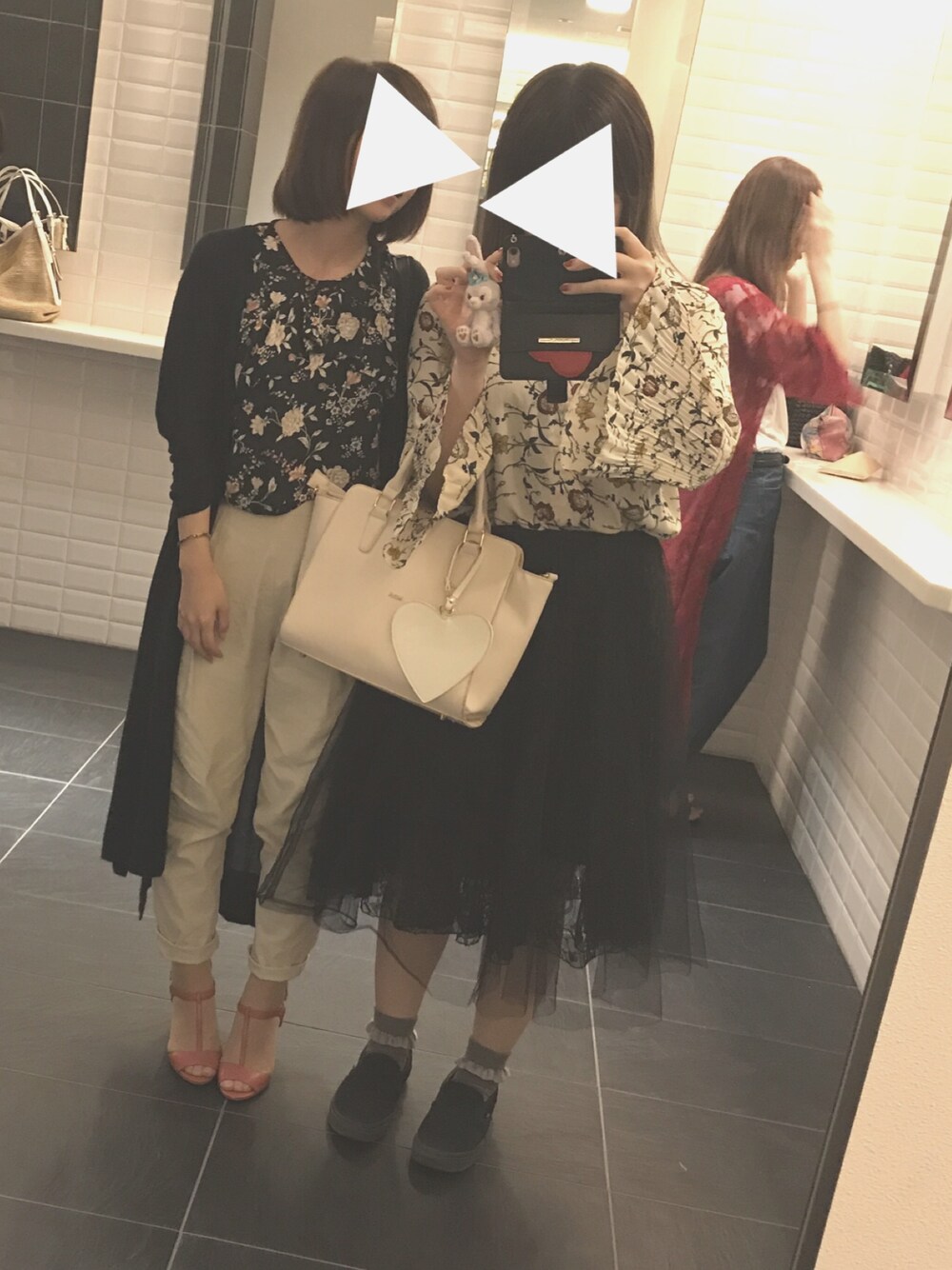 ちょっと前に後輩(左)とドレスコードを花柄のトップスにしたら色合いもバッチリ合ってテンション上がった(笑)