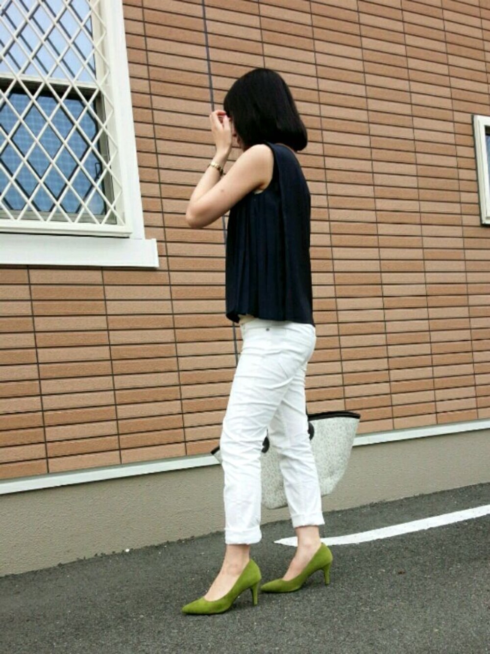 **⭐⭐休日コーデ⭐⭐** 腕出しちゃってゴメンナサイ🙇🙇🙇🙇🙇🙇 このトップスの横の部分はプリーツになってます💕💕
