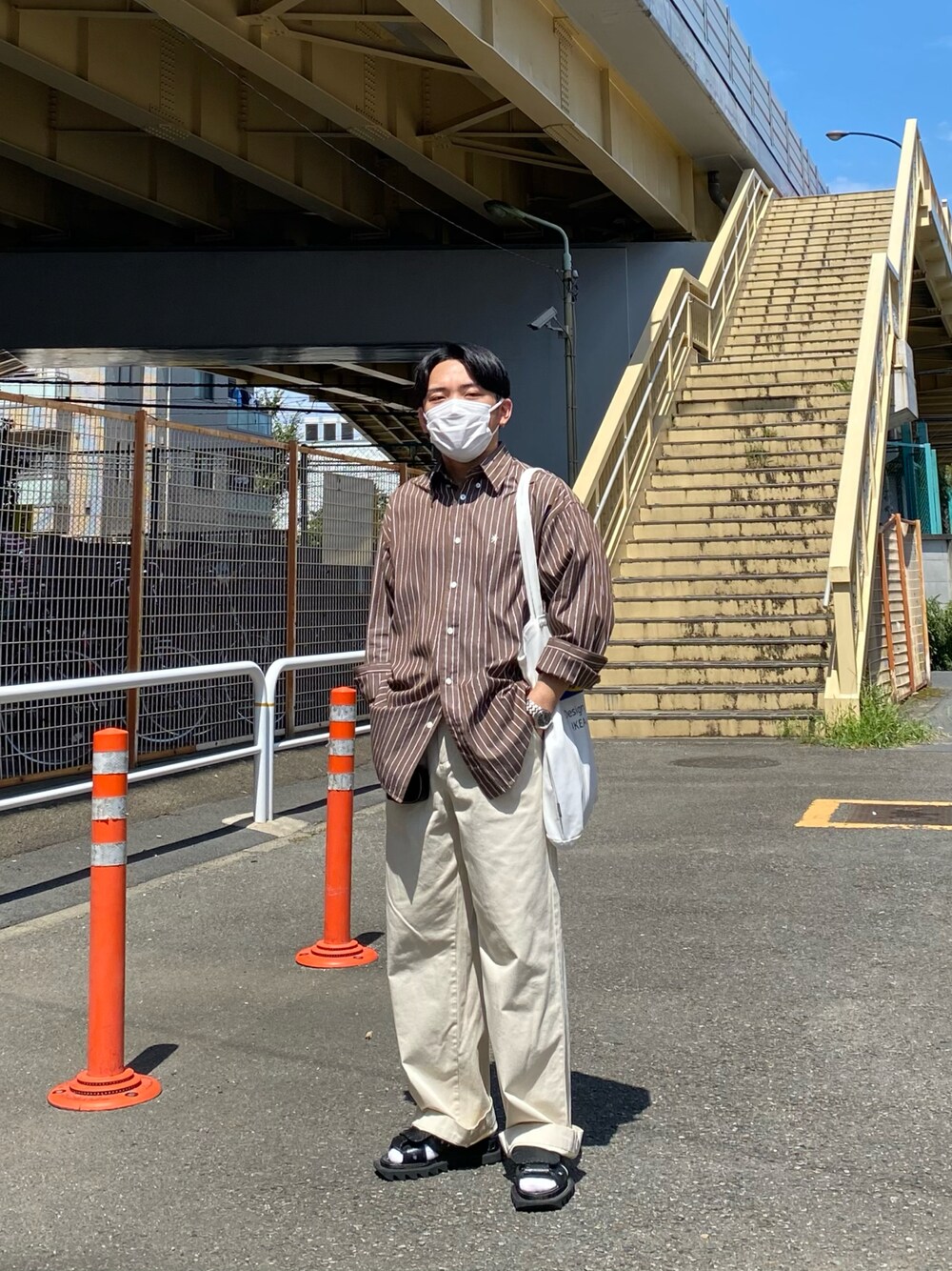 yoshiのシャツ/ブラウス「Gymphlex | ボタンダウン 長袖ワイドシャツ STRIPE MEN」を使ったコーディネート