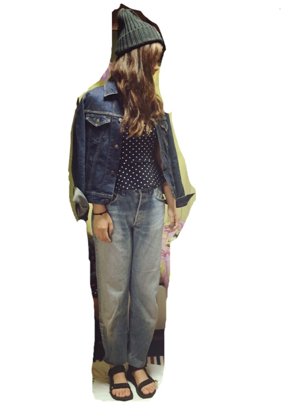 今日は寒かったので久々にGジャン羽織りました♩ちなみにデニムのすそ自分で切って切りっぱなし風にリメイク😂