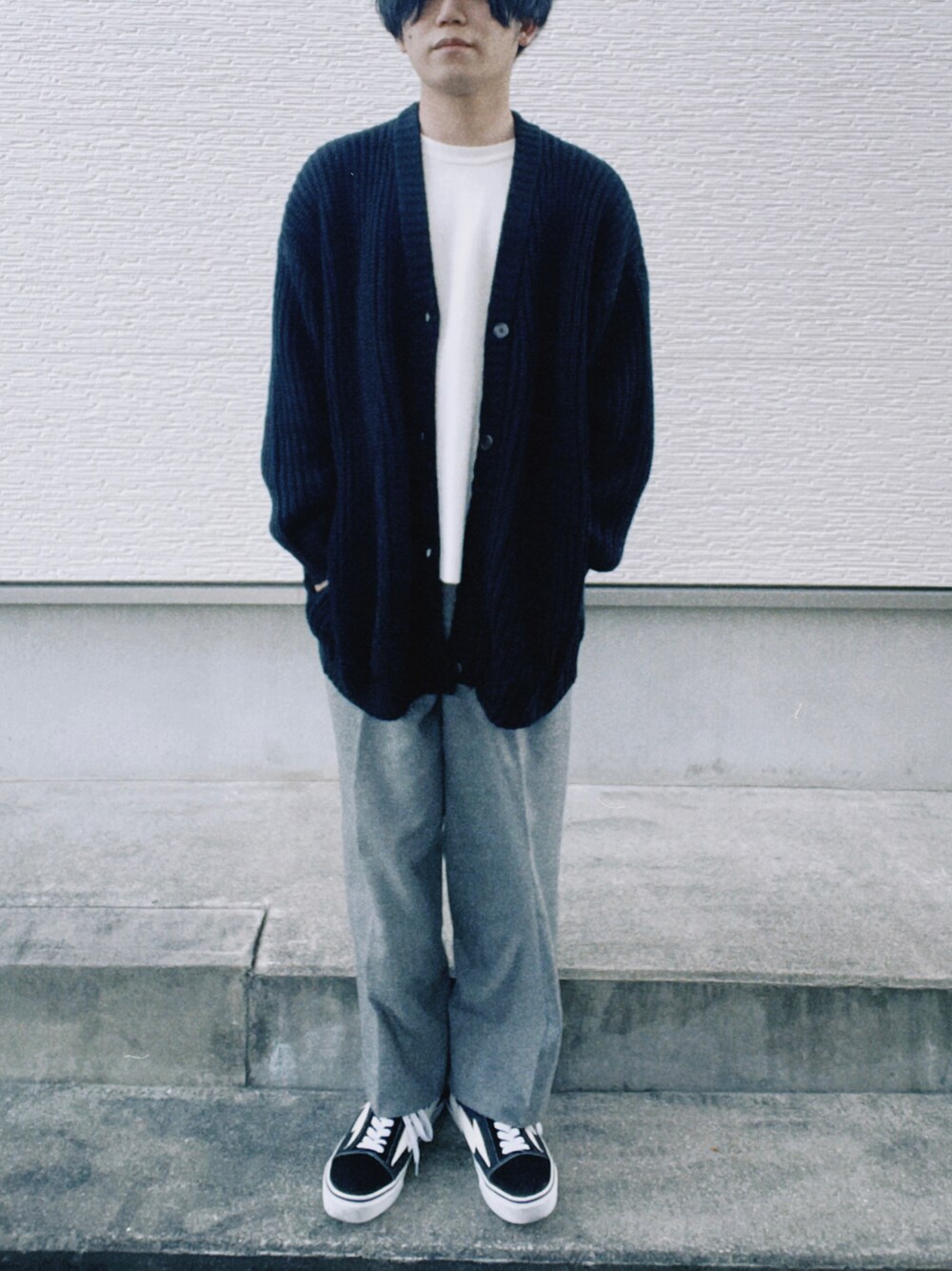 yamaのカーディガン/ボレロ「畦編み 5G ルーズニットカーディガン」を使ったコーディネート