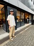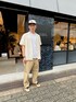 お初にお目にかかります! 使いやすいベージュのチノパンと白Tの相性は抜群です! そこに変化をもたらすべくして生み出されたこのメッシュシャツをあわせてclassic なコーデに仕上げました。