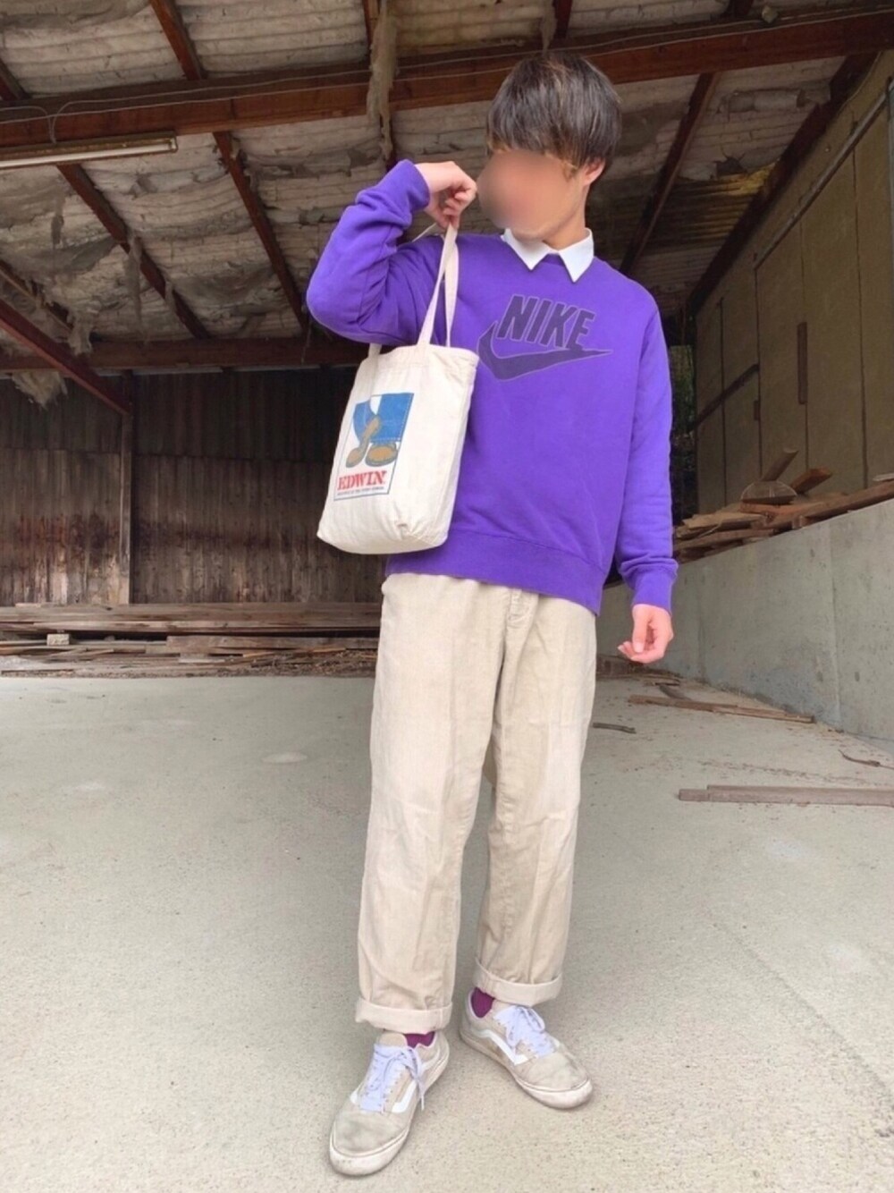 いつもご覧いただきありがとうございます😊 今日のコーデは、紫のNIKEスウェットの下にLAD MUSICIANの白シャツを着て、古着のベージュパンツを合わせてみました。 スウェット×シャツの組み合わせは、可愛いですよね😳 NIKEのビッグロゴのスウェットもなかなか可愛いです😜 フォロー&いいねよろしくお願いします。