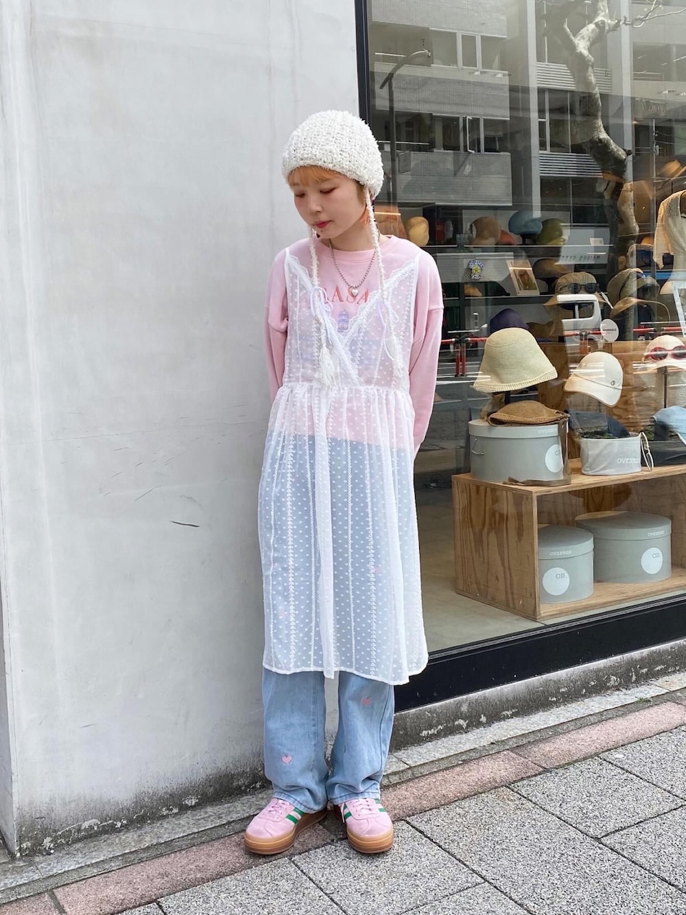 もちちゃん(OVERRIDEルミネ横浜)のニットキャップ/ビーニー「OVERRIDE x pan TWINKLE CLOCHE / オーバーライド」を使ったコーディネート