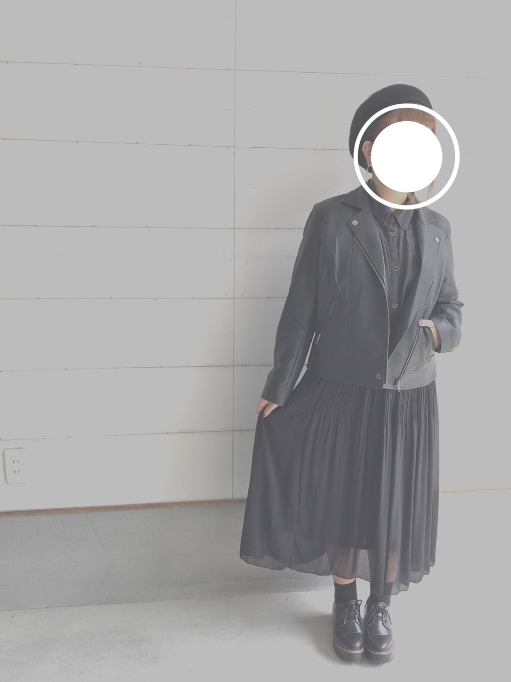 ブラック系のジャケット/アウターを着用したレディースの春コーディネートの1枚目の写真