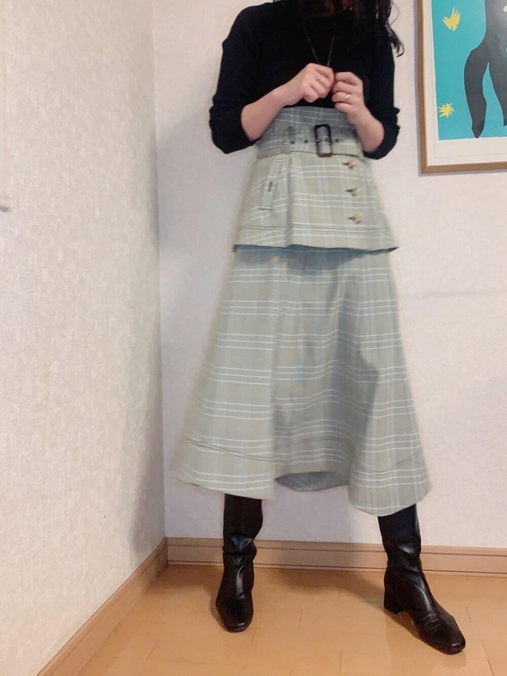 きれいめなスカートにロングブーツを合わせてモノトーンで揃えました!! ハイウエストなので脚長効果で細見えしてシルエットがすごくかわいいです☺️