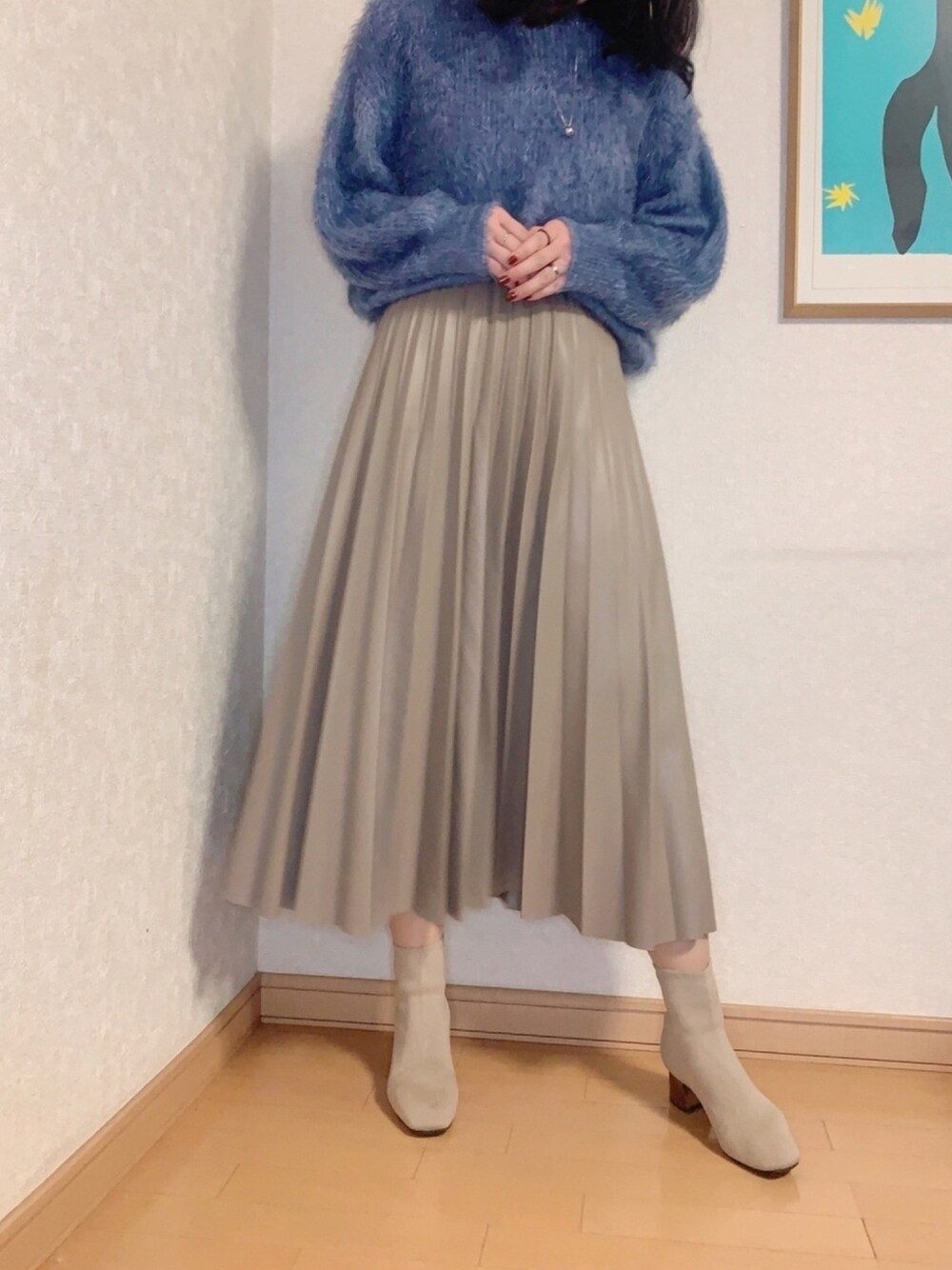 ブルーのニット、意外とベージュ合わせが可愛い……🐰💕 淡くて優しい印象になります!