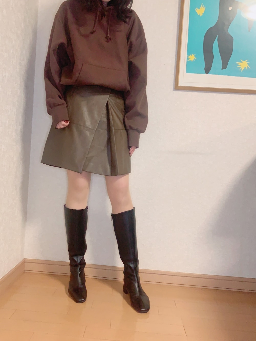 ミニスカ×ロングブーツの合わせはシルエットが可愛くて本当にすきです!! GUのスウェットはメンズのXLサイズです!