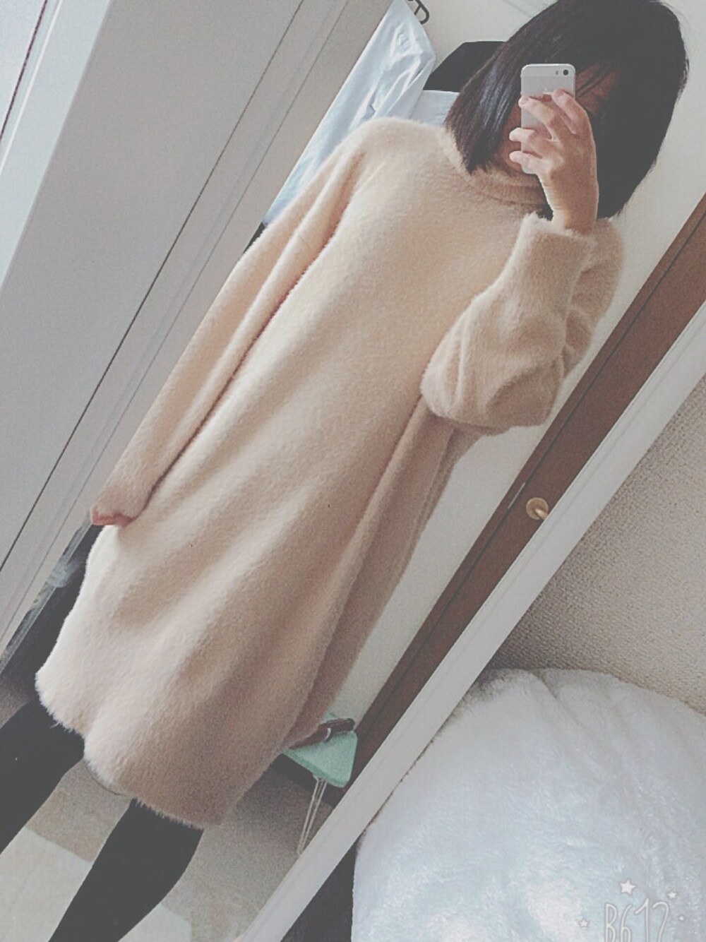 ニットワンピで写真だと分かりにくいけど、割と綺麗なパステルカラーのピンク。 1着でダボっと着れるので個人的には好きです。