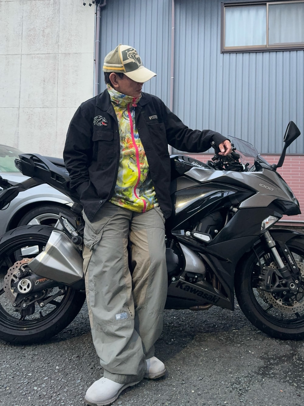 見て頂いてありがとうございます。 今日のバイクコーデ。 キャップとパンツが古着です。