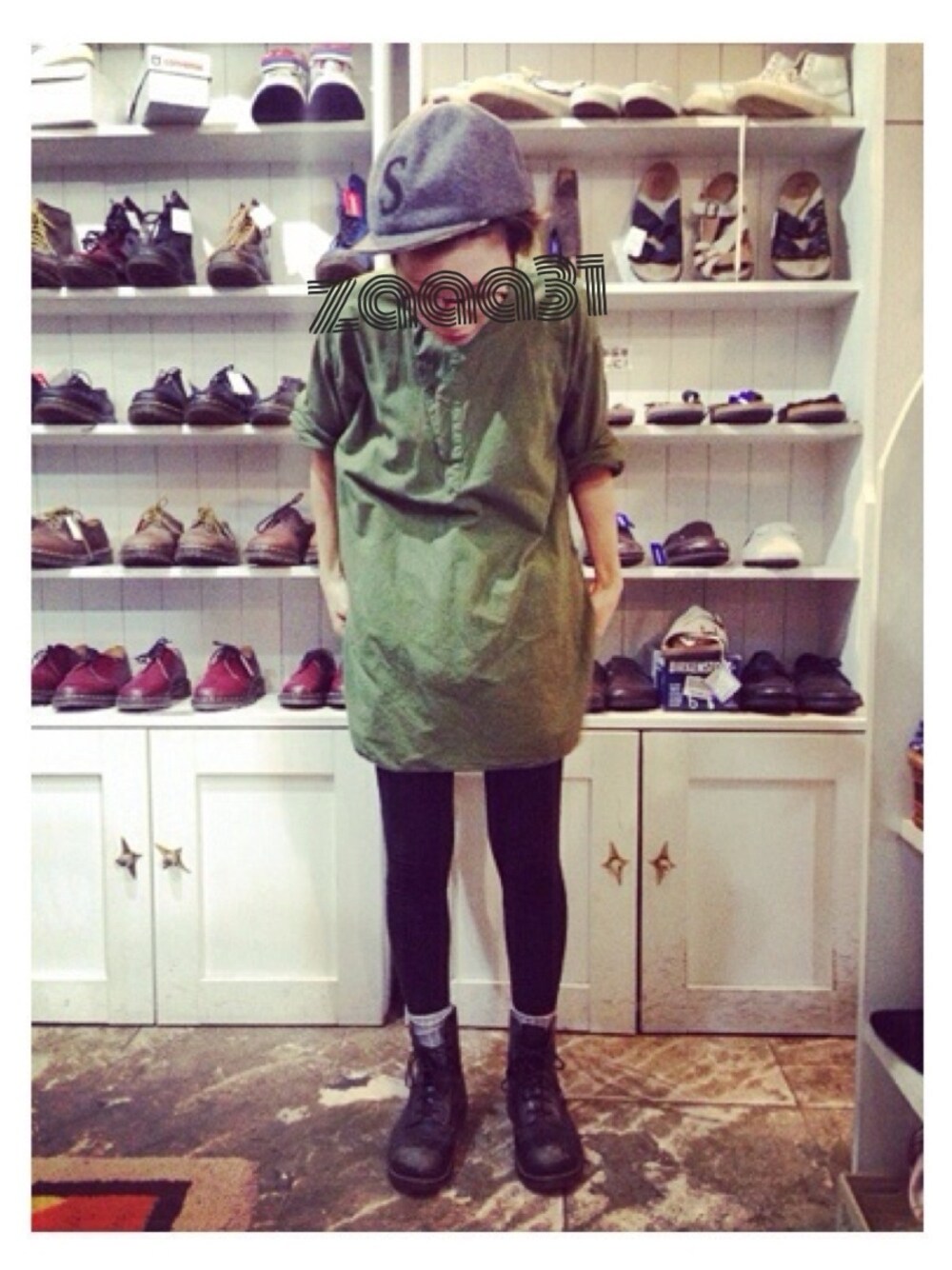 人生初のキャップを購入した 日。 トップス:古着 靴:Dr.Martens 帽子:COOCHUCAMP