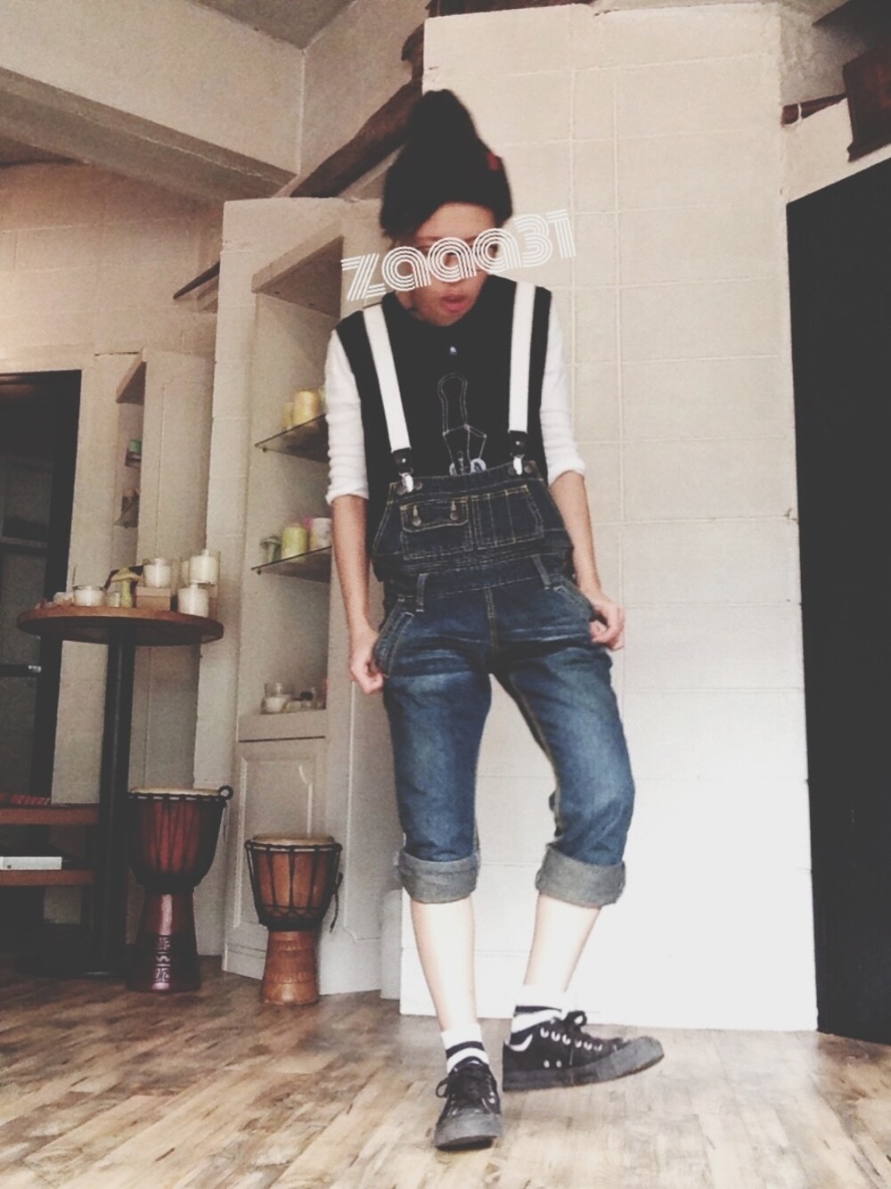 最高に秋晴れやけど仕事ー な日。 サロペット:セカスト タンクトップ:アメメのおめめ インナー:UNIQLO 靴:GU