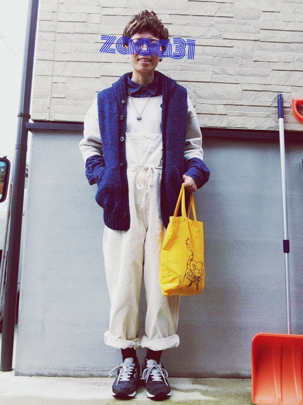 美容院でカラーしてきた 日。 ベスト:FOREMOST スウェット:FOREMOST シャツ:ホームセンター オーバーオール:KAPITAL 靴:NB 1400 鞄:アメメのおめめ
