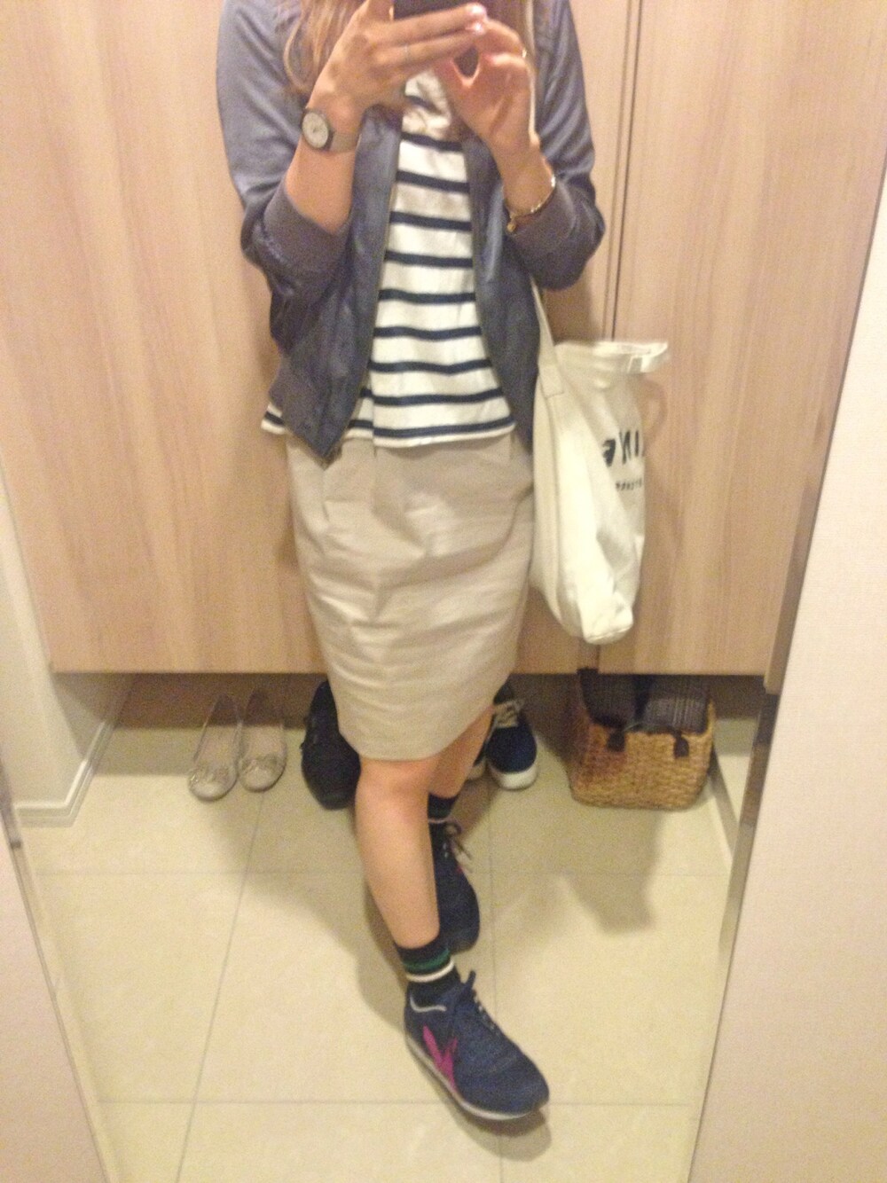 トップス:ブランド不明 ジャケット:apart by lowrys 靴下:靴下屋 スニーカー:KASTANE 本日寝坊💦