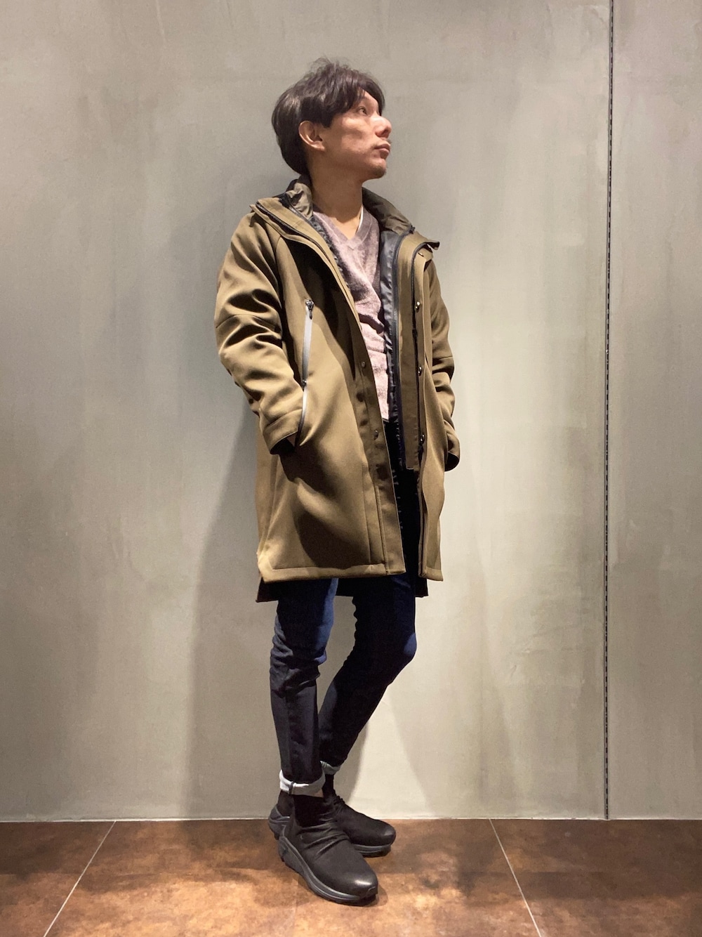 zakiのステンカラーコート「TORNADO MART∴3WAYオーバーフーディコート」を使ったコーディネート