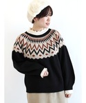 ご覧頂きありがとうございます𓅷 シャレオ店人気の求人柄ニットに チェックスカートでカジュアルコーデにしてみました🐼🖤
