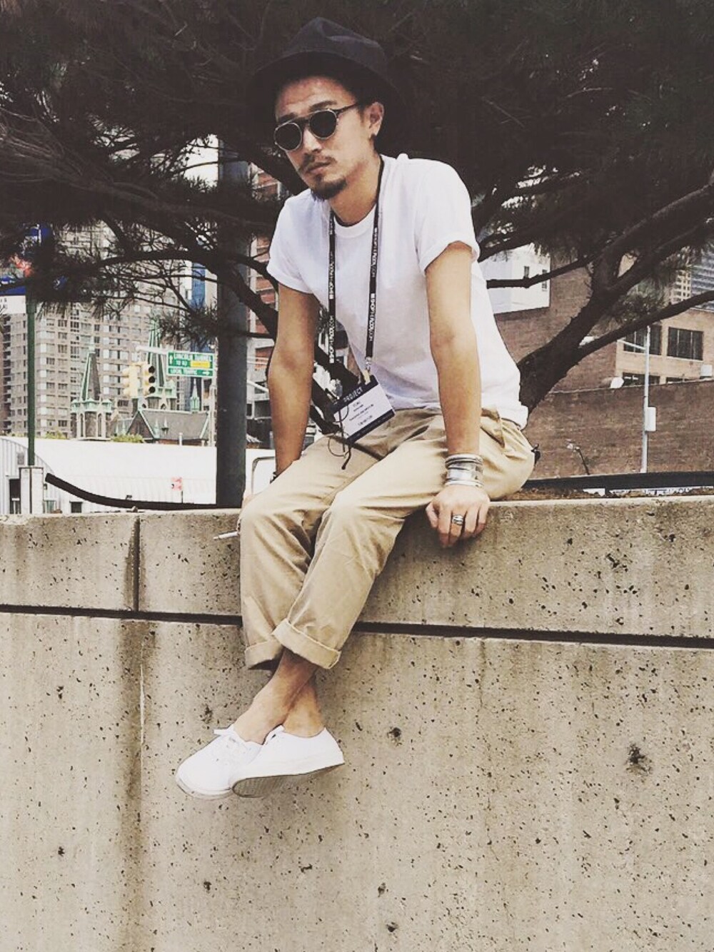 シルバー系のバングル/リストバンドを着用したメンズの夏コーディネートの1枚目の写真