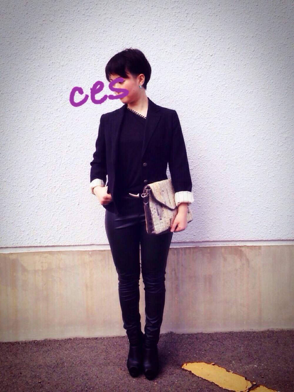 インナーのTシャツはUNIQLOのをリメイク。ほんとにちょっとだけだけど、(モスキーノの14SSで出てたカットソーの形を参考にしてみました) 丈の長いアウターを合わせてみるのも 大人っぽいかなと思ったけど、今回はいつもの私らしく短めにしてみました。 だけどフェイクレザーパンツという異素材感で遊び心を。 いろんな色を経験して最近は前よりもずっと黒が似合うようになってきた気がして少し嬉しい(^^)