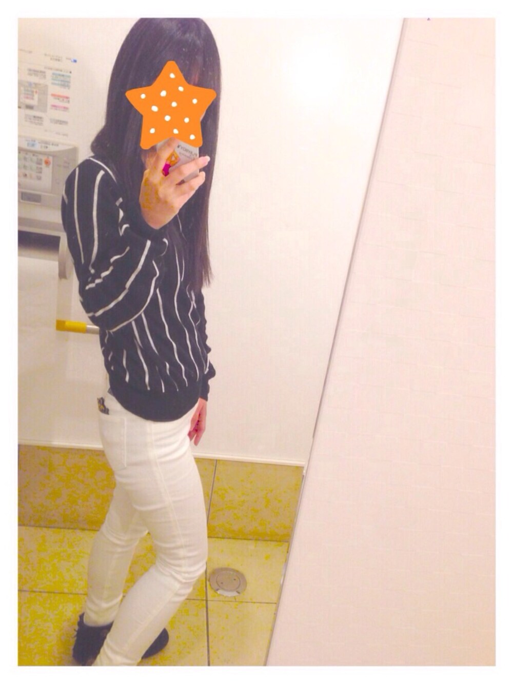 ストライプニット しまむら 白ジェギンス moussy 髪の毛黒くしました♡⃛ 前髪も作って(*^^*) 受験と面接のために