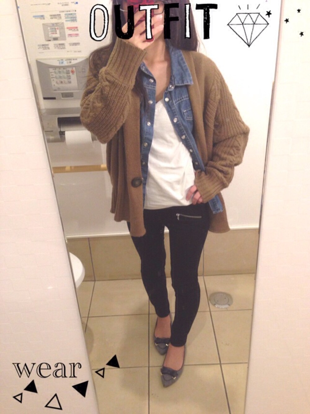ニットカーデ ZARA ダンガリーシャツ FOREVER21 インナー moussy