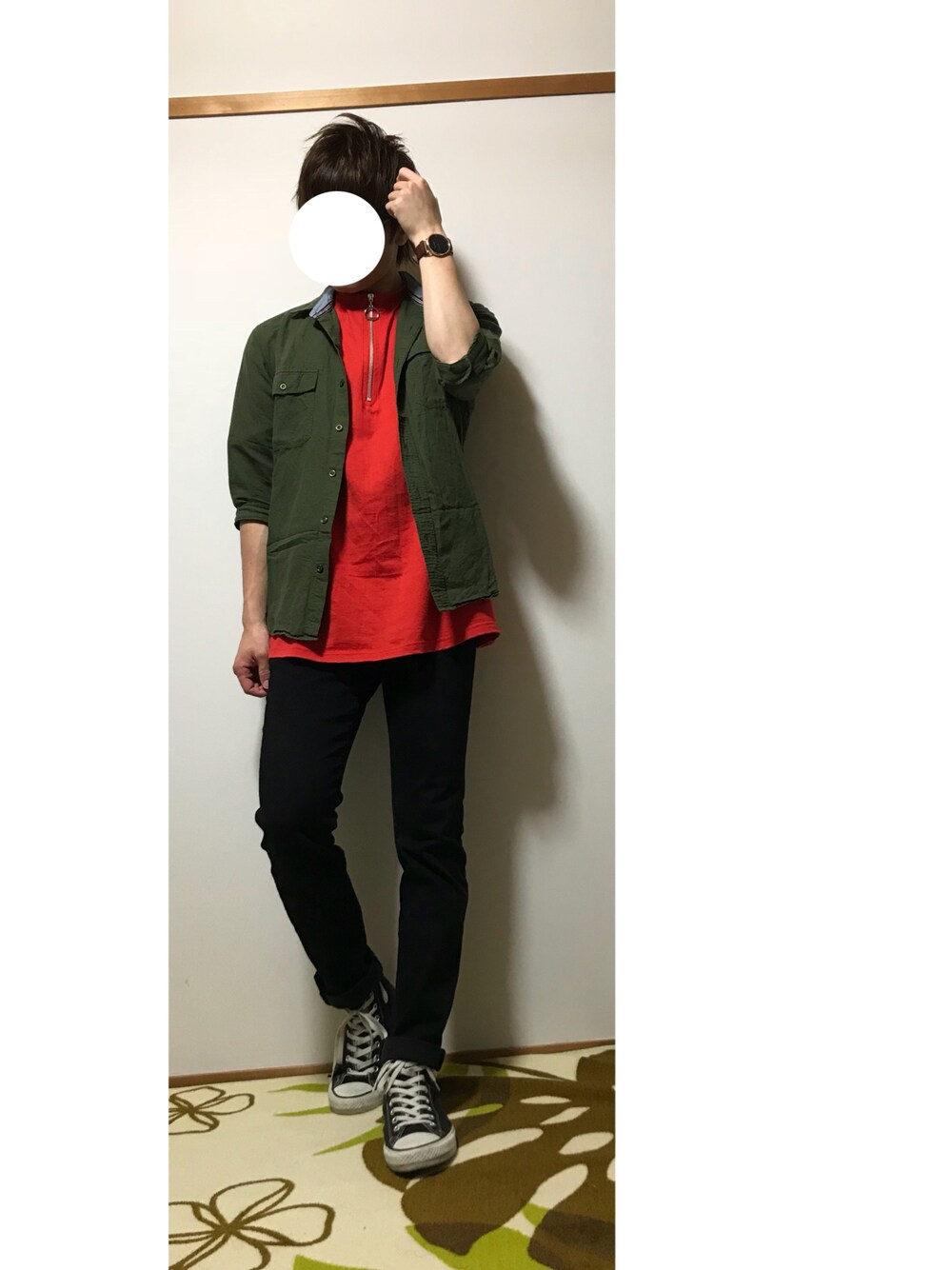久しぶりの投稿! オレンジのハーフジップでトレンドを取り入れたコーデにしてみました(*^_^*) トップは派手目なので、ボトムは黒で統一しました! オレンジとカーキ‥カッコいい✨