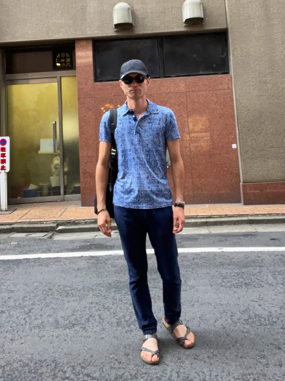 ご覧いただきありがとうございます。 シンプルポロシャツコーデです。 ブルー系のアイテムでそろえて統一感を出すようにしました。 夏はサンダルを多用してしまいますね。