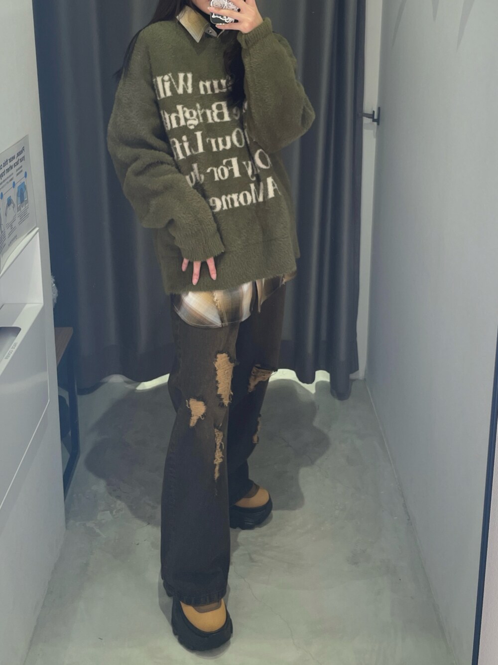 Ruu(PAGEBOY アミュプラザくまもと)のニット/セーター「《UNISEX》シャギーメッセージニット」を使ったコーディネート