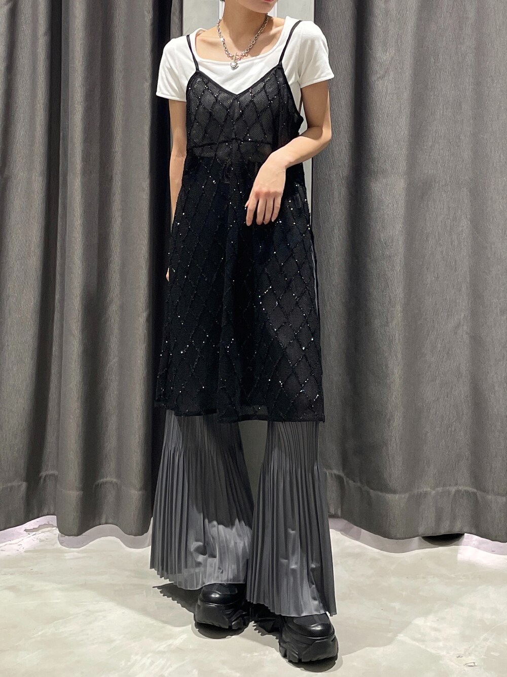 キラキラのキャミワンピが目を引くコーデ✨️ 普段のコーデにプラスワン出来て、マンネリ化を 防げるアイテ厶😊