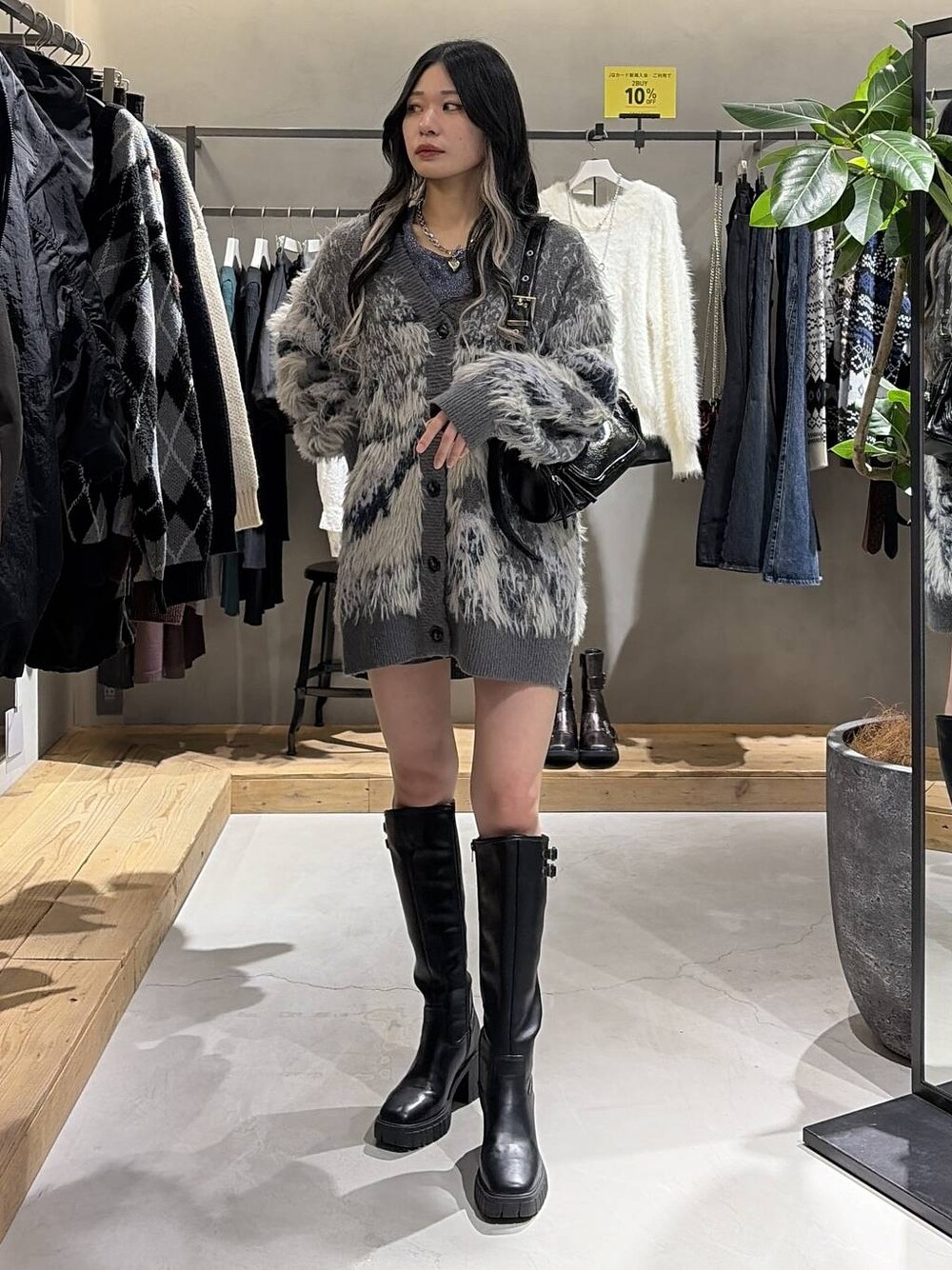 トップス フワもちっとした生地でキャミの上からでもチクチク しないカーディガン‼️ お尻まで隠れる丈感で安心感があります✨️ シャギー系は苦手で、肩周りが気になる方でも 華奢見え出来るカーディガンです😎👍 モードな感じが好きな人にもオススメ🫶💕 ロングブーツ MLで選べるサイズ感! 厚底ヒールなので美脚効果抜群😎👍 キレイめやカジュアルなコーデにも合わせやすくなる ロングブーツです‼️ ピタッとしたロングブーツより脚の形が 出ないのでピタッとしたのが苦手な方にもオススメです💕 あと、自立してくれるのでありがたい🙏🙏