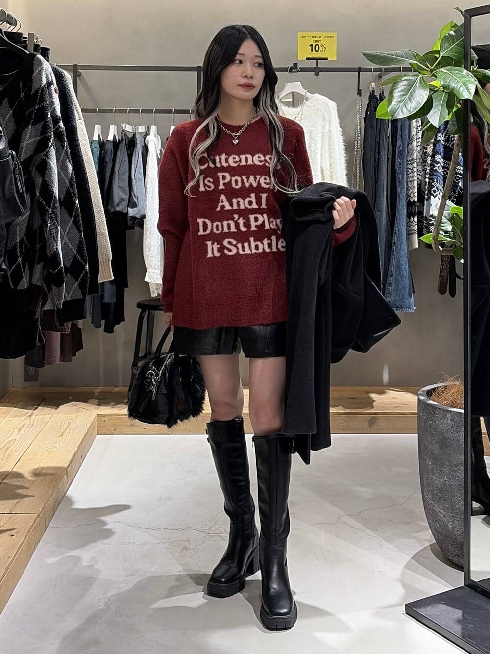 トップス メッセージニット✉ シャギーなので肌触りがフワフワしてて気持ち良い‼️ ゆったりとしたオーバーサイズシルエットで 大きくフロントにロゴが入っているので、アウター着ても ロコがアクセントになってコーデの主役になります✨️ ユニセックスで着れるのでお揃いにもオススメです💕💕 ロングコート スタンダードなシルエットのロングコート🧥🖤 中にアクセントでカラーを入れてワンポイントに❣️ 丈感もSMで選べるサイズ感です 158でMサイズ着用です! 従来のロングコートとは軽さが違うロングコートで 羽織ると軽いアイテムです✨️✨️