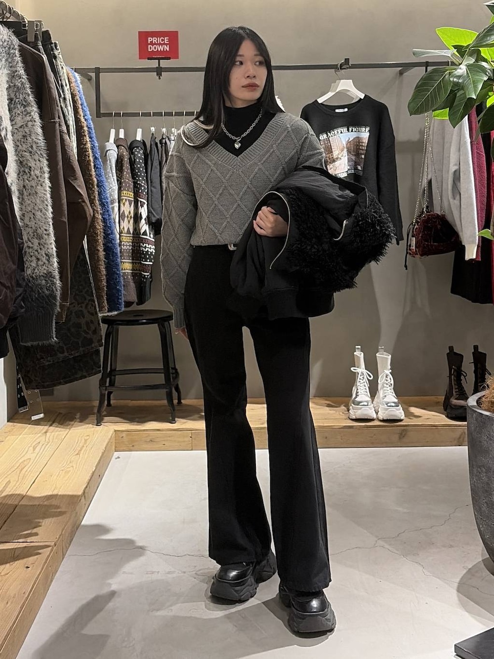 トップス 前後でで着れちゃうショート丈のニット! 中にインナーを入れてこなれ感をだしたり、 そのまま着てもチクチク感なくて生地もしっかり してます✨️✨️ 後ろはレースアップになっていて 甘めな印象になります💕 キレイめやカジュアルに着たいなって方はVネックを 前にするとシンプルに着ていただけます‼️ ボトムス PAGEBOYらしいちょっと珍しいデザイン ハイウエストで履くので、細見え・美脚効果抜群✨️ こちらもMサイズ着用! ジャストで履くならS、丈感ほしいならMな感じでした✨️ サイズも4サイズXSから選べるので、低身長さんや高身長さんでも選べるサイズ感です! 158でMを履いて、おしりと太ももの部分に少し余裕がありました‼️丈感的には丁度いい丈感👍