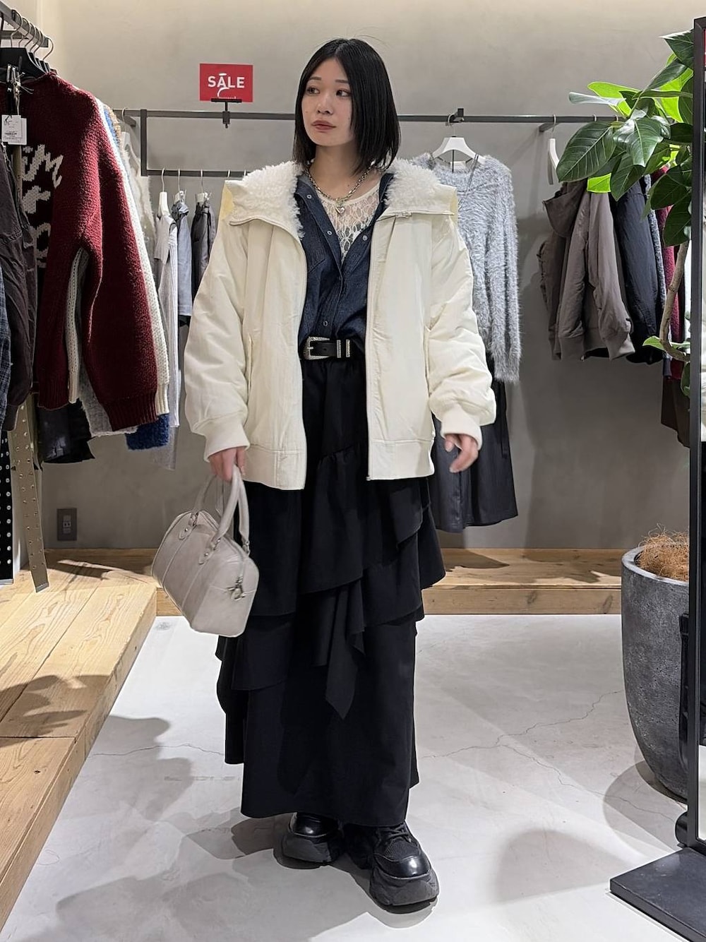 冬×春物コーデ⛄️🌸 トップス🌸 オーバーサイズのデニムシャツ‼️ 体型カバーにもなる緩さで丈感も お尻まである安心感✨️✨️ 素材感も柔らかいデニム生地なのでinしても ごわつかない‼️ キレイめやカジュアルにも使えるのでコーデの幅も広がり、 ウエストのところにベルトが通せるベルトループが あるのでシルエットがガラッと変わります! アウター⛄️ リバーシブルが出来るブルゾン🫢 ナイロンとフェイクファー生地のリバーシブルなので 気分やコーデに合わせてスタイリングできます‼️ 丈感もお尻にかかるぐらいの丈感です! メンズライクやガーリーにも着れる主役級のアウターです‼️ 大きな襟がデザイン性があって他のアウターと差をつけれ、他にない感じで被らない😎👍 襟抜きをして着るとスッキリ見せもできます‼️ ボトムス 秋冬のスカートはちょっと重いイメージがあるんですが、 意外と軽くてウエスト全ゴムなのでストレスフリーで 履けます‼️ フリルだから腰周りとかも広がるイメージが あったんですがこのスカートは腰周りにフリルが無く タイトっぽい感じになっているので、スッキリ見せが 可能✨️🙆♀️